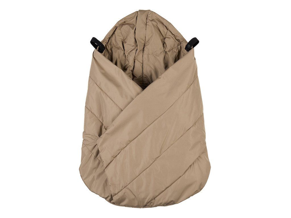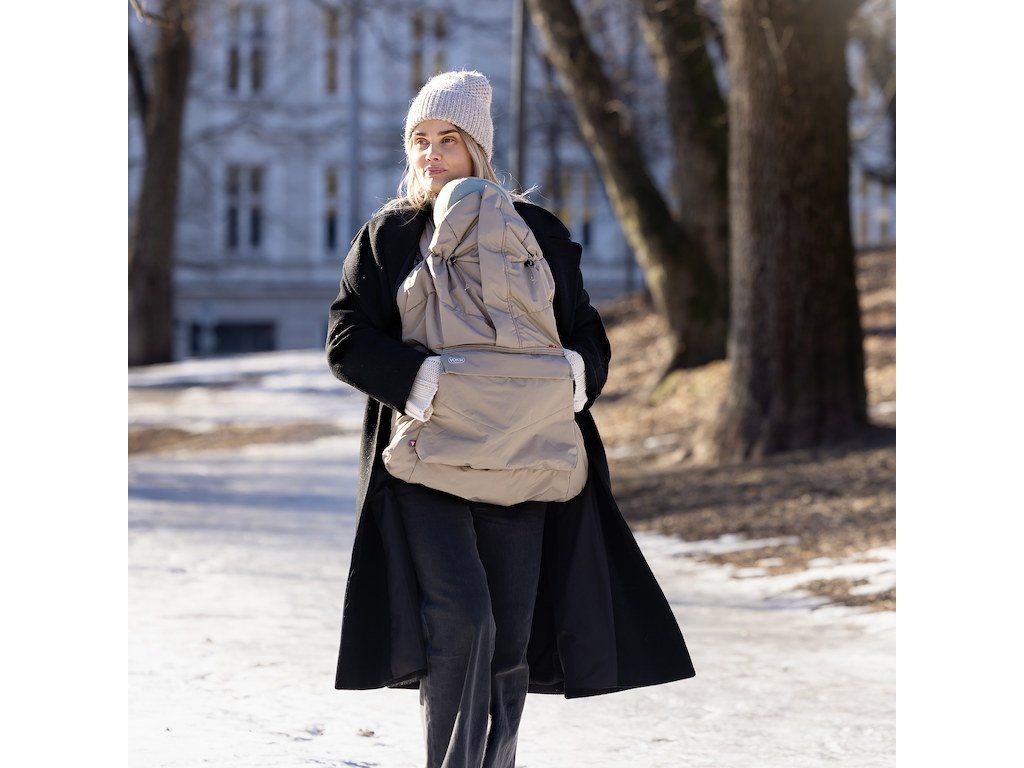 Potah se snadno připevňuje na jakékoli nosítko pomocí patentních knoflíků. Zip v horní části umožňuje větrání nebo rychlý přístup k dítěti. Kapuci lze nastavit tak, aby těsně přiléhala k hlavě dítěte, a vnitřní elastické šňůrky v oblasti nohou vám umožní jej nastavit na délku vašeho dítěte. Kapsy na ruce vám poskytují přímý kontakt s dítětem nebo slouží i jako ohřev rukou. Když se kryt nepoužívá, lze jej složit do skládací kapsy na zip. Během používání nabízí stejná kapsa pohodlné uložení drobných osobních věcí. Kryt je určen pro nošení uvnitř i venku a je perfektním praktickým pomocníkem i v kočárku nebo při kojení venku.