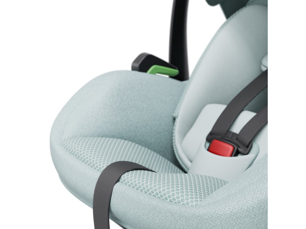 Sedačku lze snadno nainstalovat na otočnou základnu IQ Orbit nebo pomocí bezpečnostního pásu vozidla..