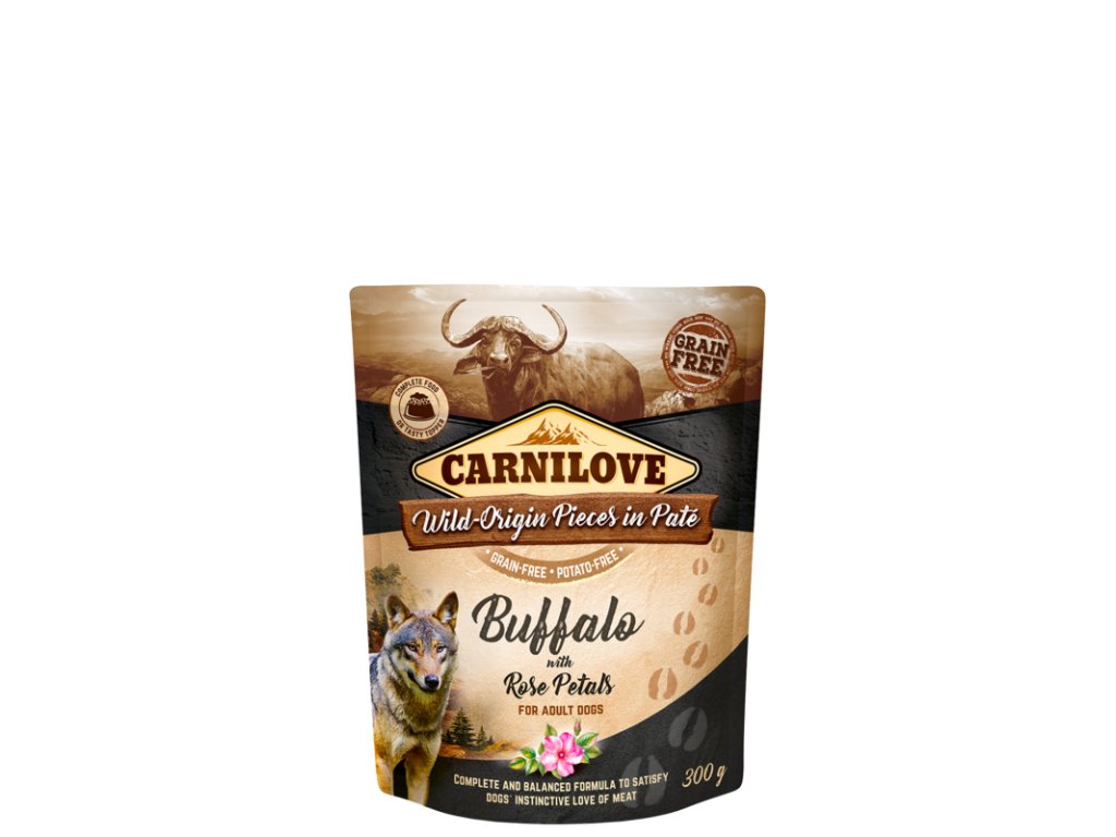CARNILOVE WILD-ORIGIN PIECES IN PATÉ - BUFFALO WITH ROSE PETALS FOR ADULT DOGS