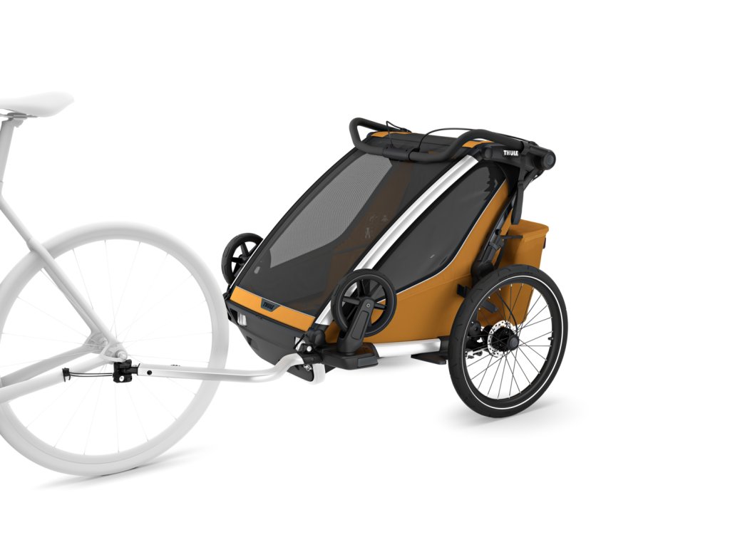 Thule Chariot Sport 2 je navržen tak, aby trénink byl bezpečný, snadný a zábavný. Umožňuje plynulé přechody mezi jízdou na kole a procházkou po jakémkoli terénu. Rychlé 180° otočení kola jednou rukou promění cyklovozík během několika sekund na kočárek. Nově přepracované závěsné rameno disponuje bezpečným upevněním na jedno kliknutí, což zjednodušuje připojení a zároveň přidává úroveň ochrany díky integrovanému zámku. Díky flexibilním možnostem sezení pro jedno či dvě děti vyhovuje Thule Chariot Sport 2 potřebám každé rodiny.