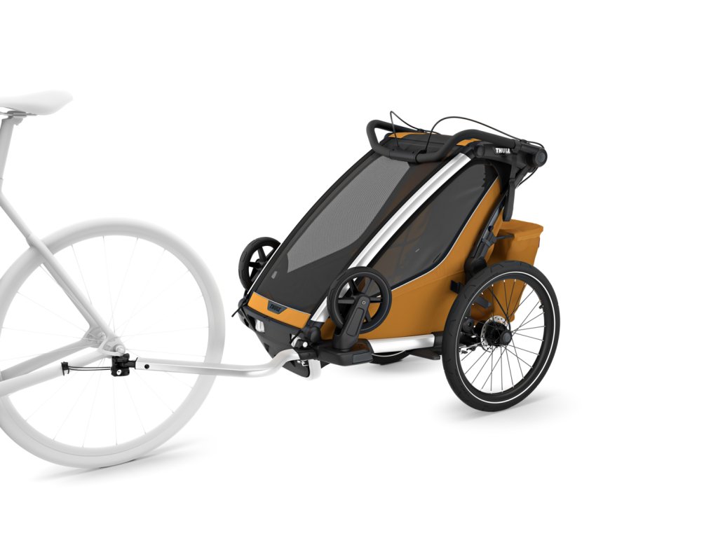 Thule Chariot Sport 2 je navržen tak, aby trénink byl bezpečný, snadný a zábavný. Umožňuje plynulé přechody mezi jízdou na kole a procházkou po jakémkoli terénu. Rychlé 180° otočení kola jednou rukou promění cyklovozík během několika sekund na kočárek. Nově přepracované závěsné rameno disponuje bezpečným upevněním na jedno kliknutí, což zjednodušuje připojení a zároveň přidává úroveň ochrany díky integrovanému zámku. Díky flexibilním možnostem sezení pro jedno či dvě děti vyhovuje Thule Chariot Sport 2 potřebám každé rodiny.