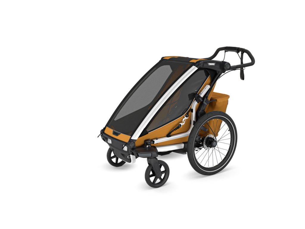 4 aktivity – navržen pro jízdu na kole, chůzi, běžecké lyžování a pohyb v jakémkoli terénu (set pro všechny terény a set pro běh na lyžích se prodávají samostatně). Zahrnuta je pláštěnka a sluneční clona, které udržují vaše dítě v suchu a chrání ho před sluncem