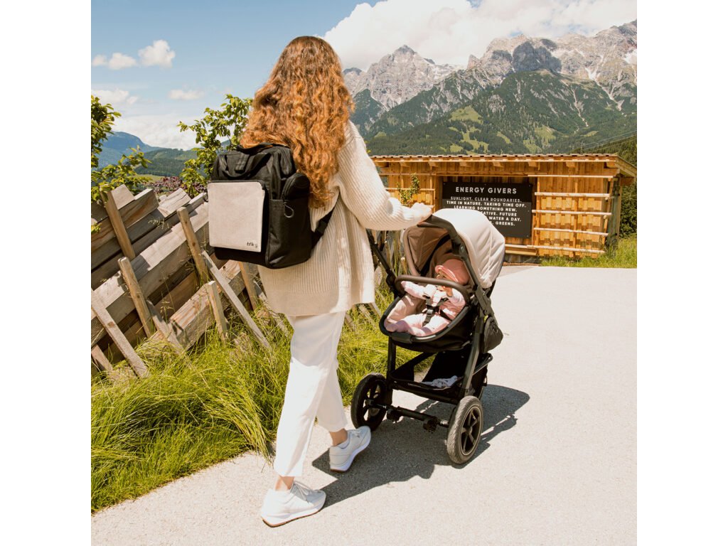 Společně s renomovaným výrobcem Lässig jsme navrhli perfektní tašku nejen na plenky pro váš kočárek tfk. Přebalovací tašku snadno připevníte ke kočárku, můžete ji nosit jako běžnou tašku nebo dokonce jako batoh díky neviditelně skladným popruhům.