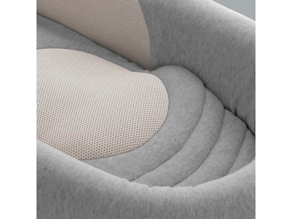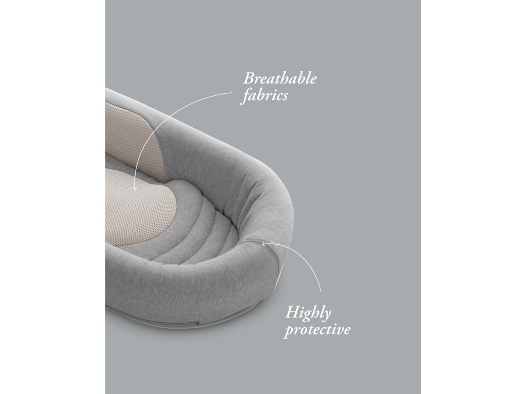 Pohodlí, prodyšnost a perfektní ergonomie: Tvar výrobku usnadňuje udržení polohy na břiše, zatímco tuhá opora na zádech vždy zaručí správnou posturu novorozence. Pevná podpěra je vybavena mikrootvory, které zvyšují prodyšnost, matrace obsahuje nastavitelný válec, který zaručuje přirozenou flexi nohou a v poloze hlavy je oválná podpora, která snižuje riziko plagiocefalie. Je to tím, že napomáhá správnému uzavření zadní fontanely. Použití prodyšných materiálů a přírodních tkanin, jako je bambus a bavlna, zaručují optimální pohodlí a prodyšnost a podporují přirozenou termoregulaci dítěte