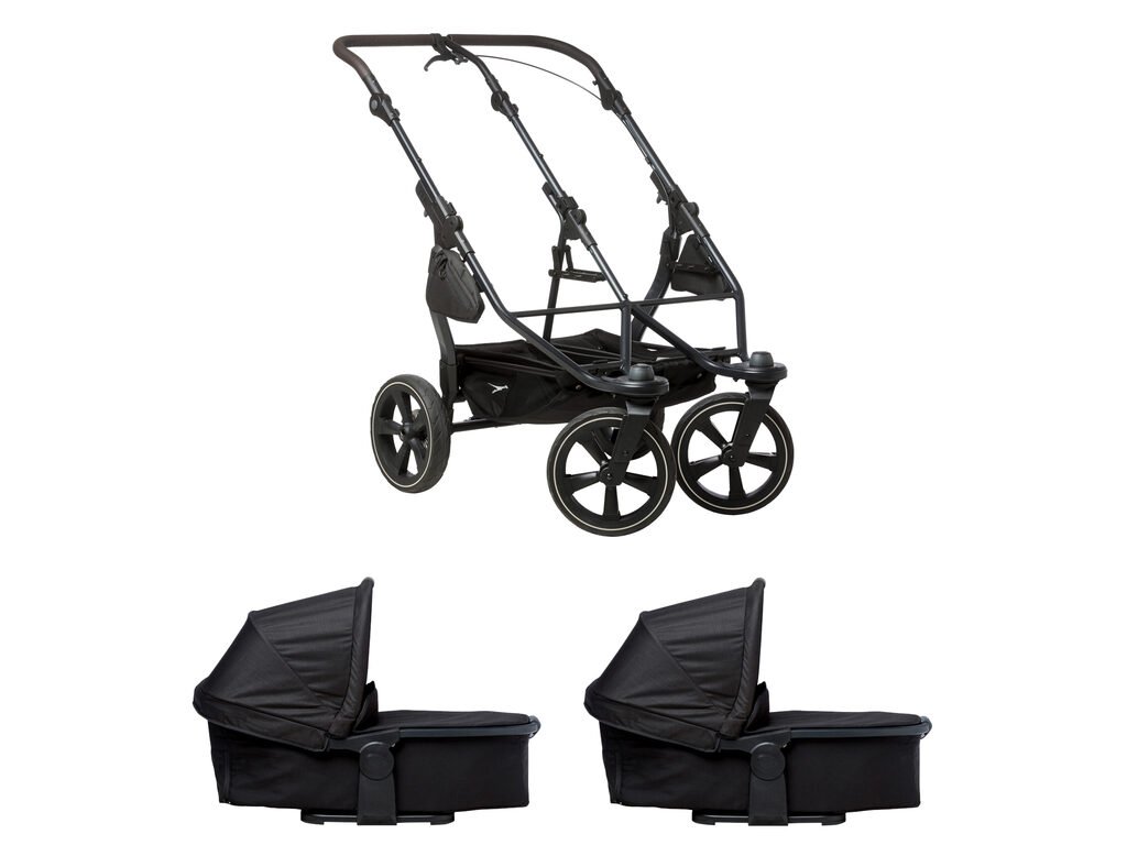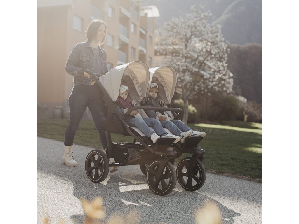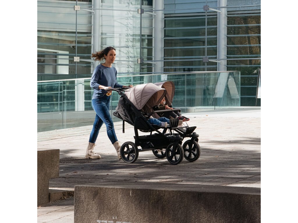 Konstrukce kočárku duo2 je větší, lehčí, odpruženější, lépe ovladatelná. Snadno na ni nacvaknete nový model hluboké korby duo2 combi, nebo sportovní sezení stroller seats duo2. Lze mít separátně dvě korby, nebo dva sedáky pro dvojčátka, anebo kombinaci korba a sedák pro sourozence.