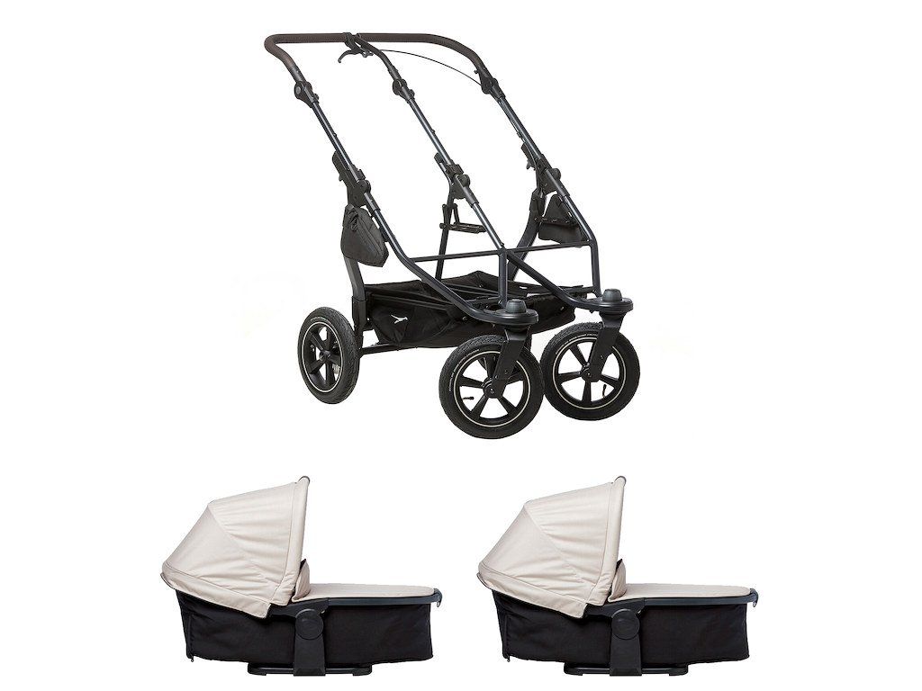 Konstrukce kočárku duo2 je větší, lehčí, odpruženější, lépe ovladatelná. Snadno na ni nacvaknete nový model hluboké korby duo2 combi, nebo sportovní sezení stroller seats duo2. Lze mít separátně dvě korby, nebo dva sedáky pro dvojčátka, anebo kombinaci korba a sedák pro sourozence.