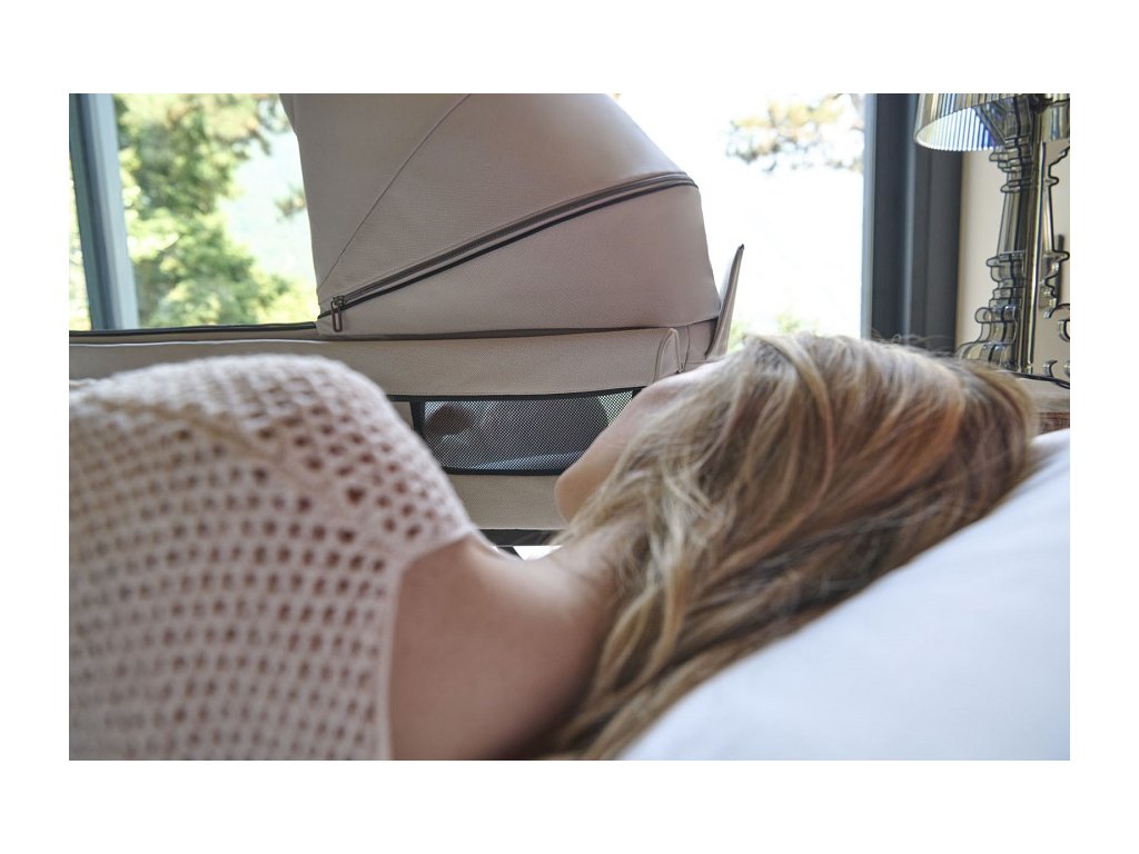 Zcela nová hluboká vanička, která na první pohled upoutá 5 okénky. Ta jsou zaviratelná a zajišťují dokonalou ventilaci v létě i oční kontakt s dítětem. To podporuje vztah mezi matkou a dítětem a také mu později dává příležitost k objevování světa. Protože přitom může ležet, získává dítě v nové Aptice náskok oproti dětem v jiných kočárcích.
