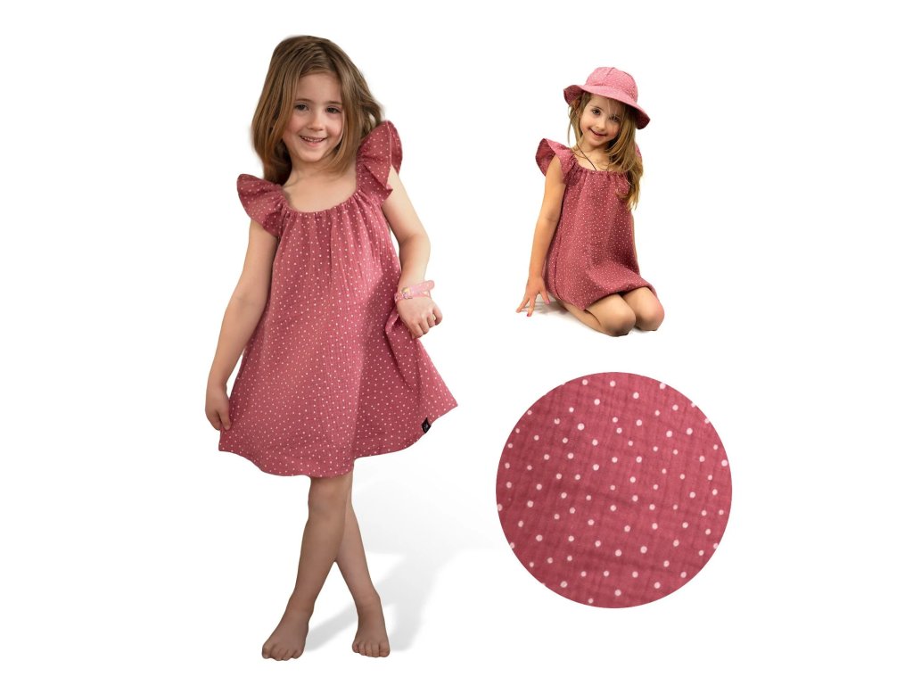 ESITO | Dívčí mušelínové šaty Ruby DOT - rubínová / 80 - 86