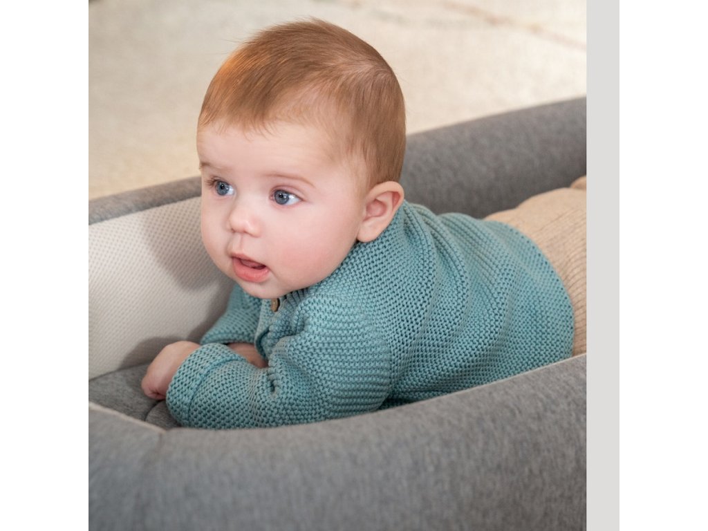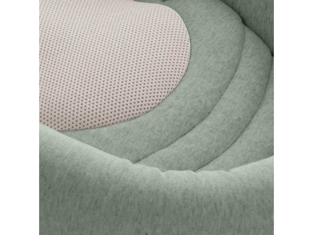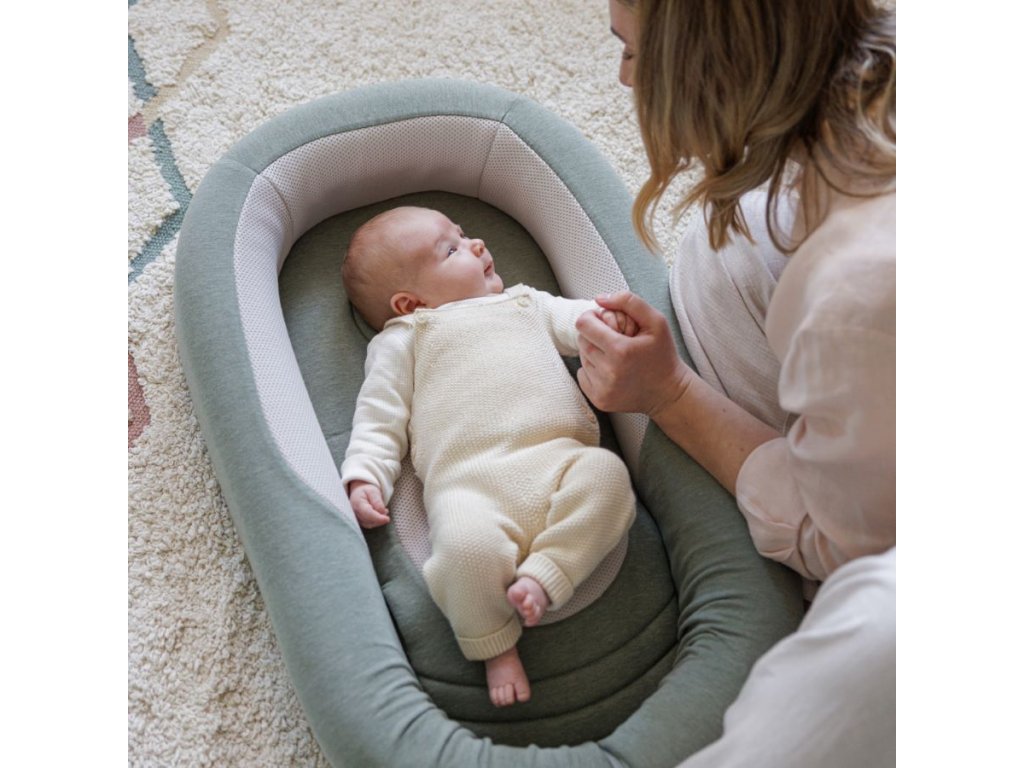 Pohodlí, prodyšnost a perfektní ergonomie: Tvar výrobku usnadňuje udržení polohy na břiše, zatímco tuhá opora na zádech vždy zaručí správnou posturu novorozence. Pevná podpěra je vybavena mikrootvory, které zvyšují prodyšnost, matrace obsahuje nastavitelný válec, který zaručuje přirozenou flexi nohou a v poloze hlavy je oválná podpora, která snižuje riziko plagiocefalie. Je to tím, že napomáhá správnému uzavření zadní fontanely. Použití prodyšných materiálů a přírodních tkanin, jako je bambus a bavlna, zaručují optimální pohodlí a prodyšnost a podporují přirozenou termoregulaci dítěte