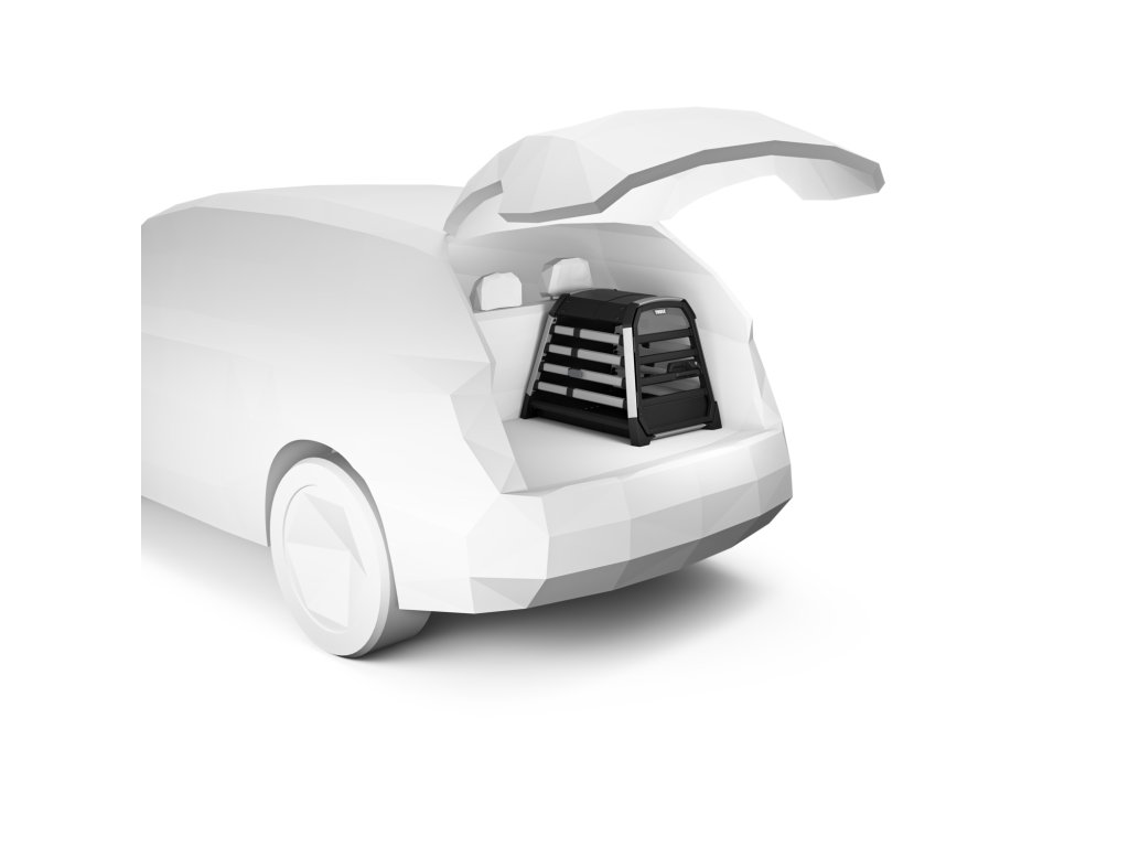Přepravní klec pro psy Thule Allax je testována při nárazu zepředu a zezadu a také při simulovaném převrácení