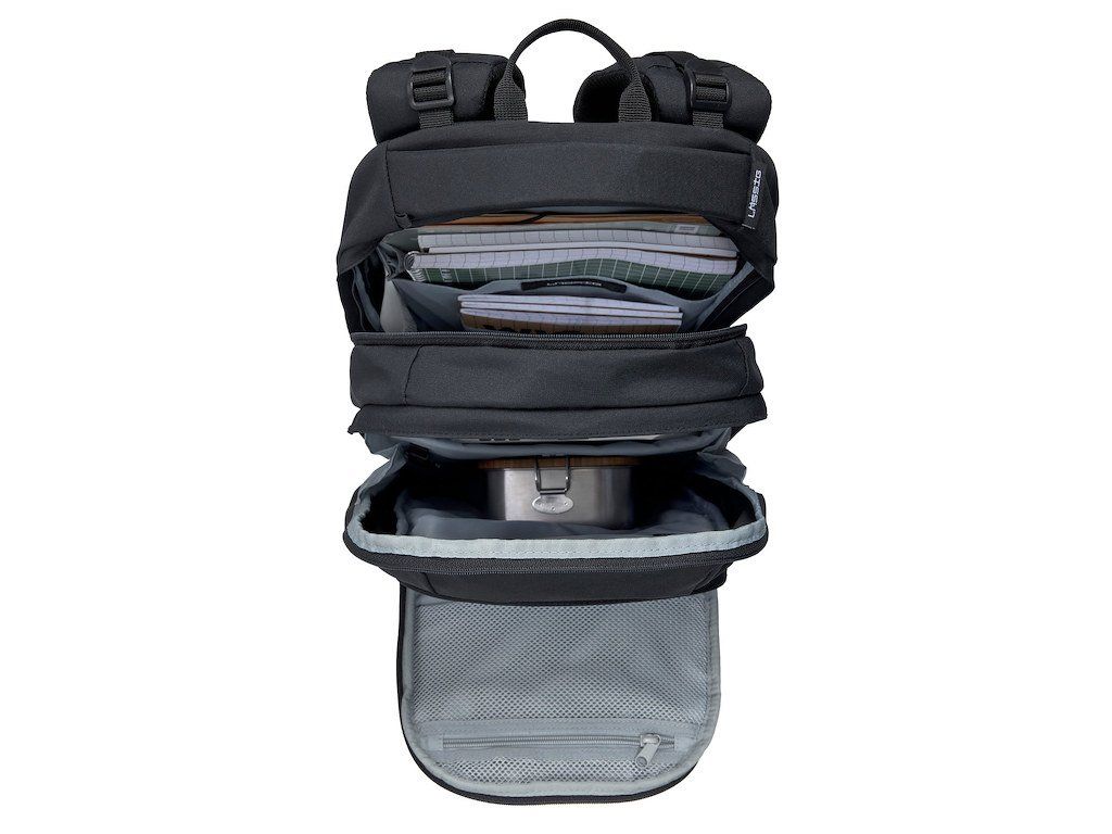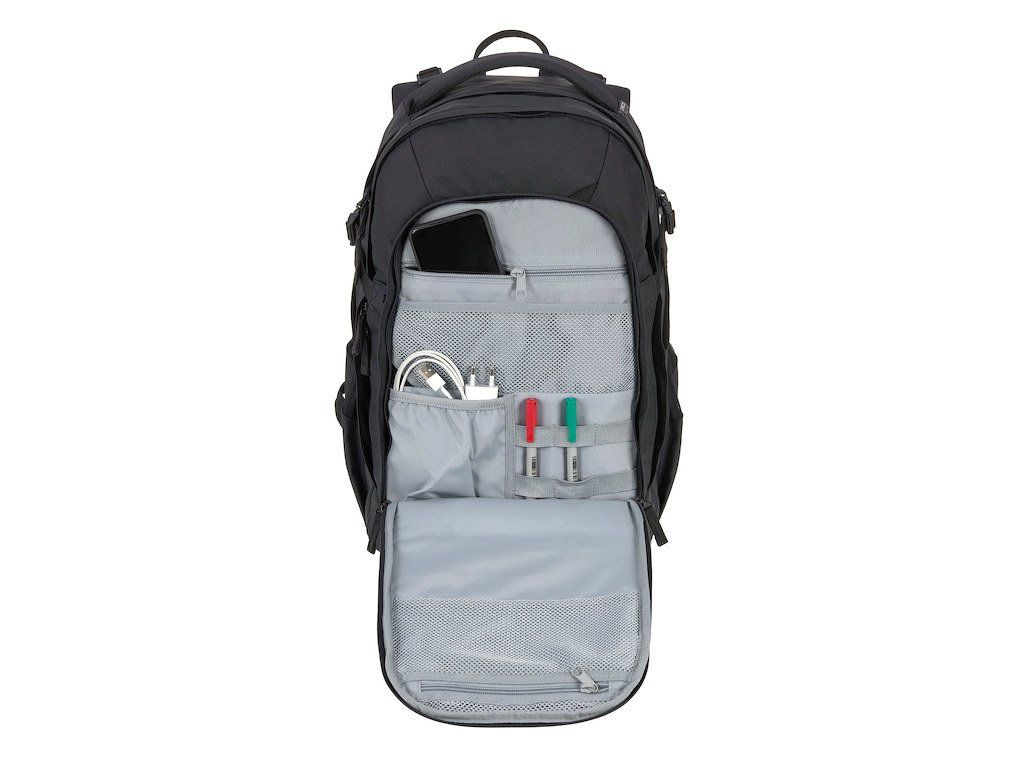 velké hlavní přihrádky na učebnice a tablet