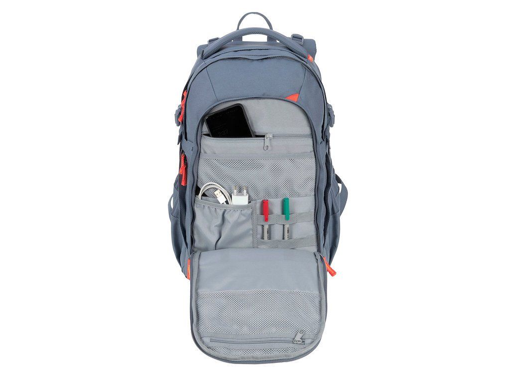 velké hlavní přihrádky na učebnice a tablet