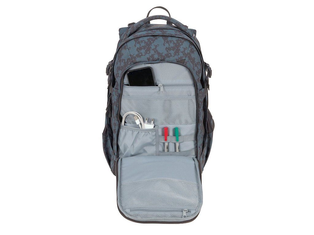 velké hlavní přihrádky na učebnice a tablet
