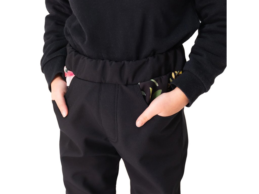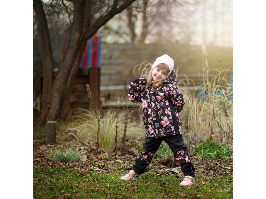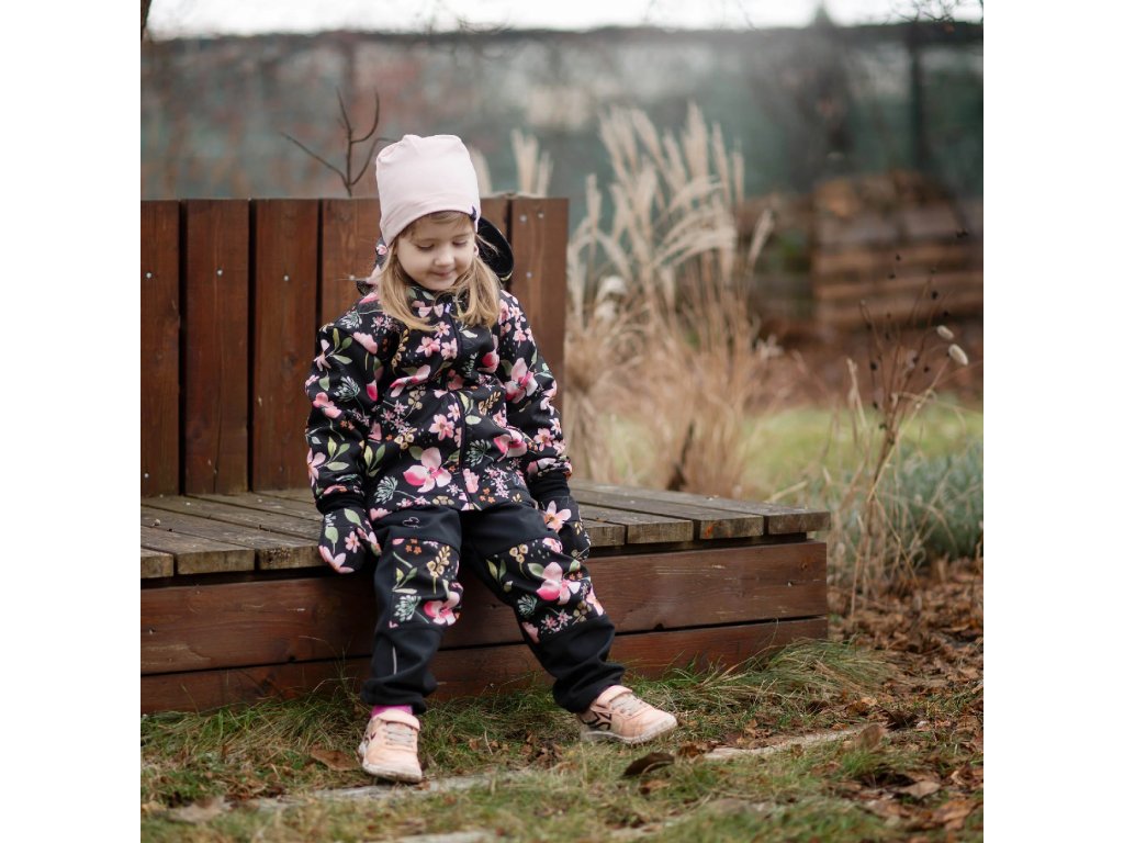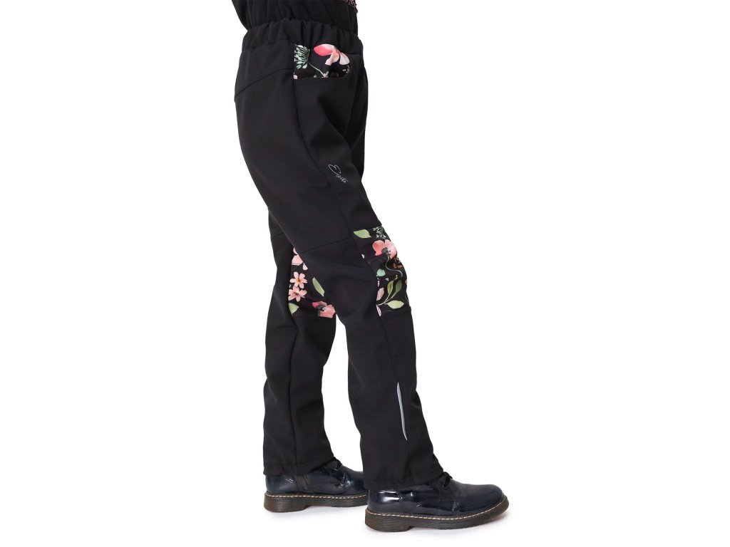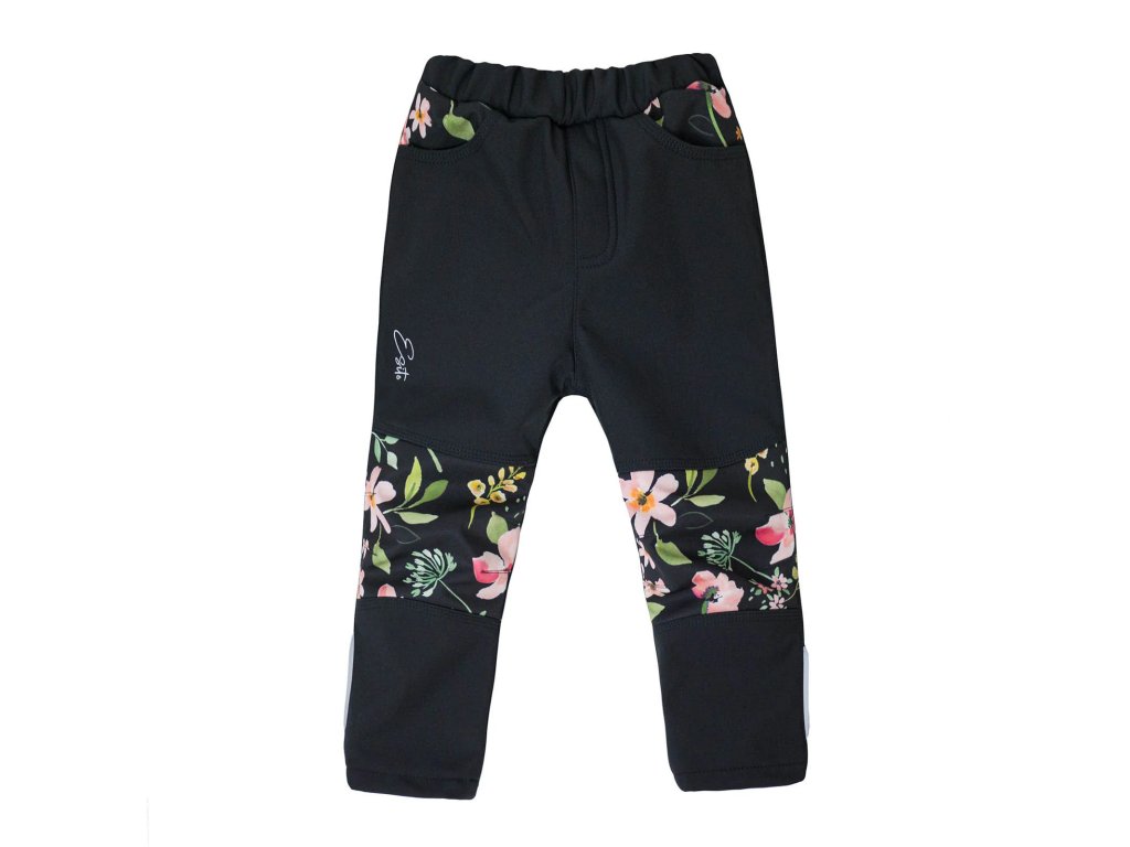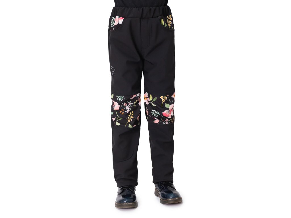 ESITO | Dětské softshellové kalhoty DUO Spring flowers - černá / 86
