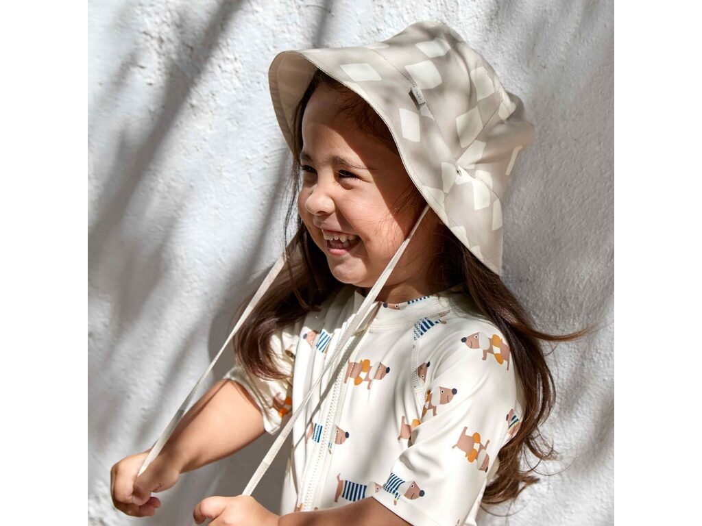 LÄSSIG Sun Protection Bucket Hat checkbo.stone/seasalt 07-12mo.size45-47