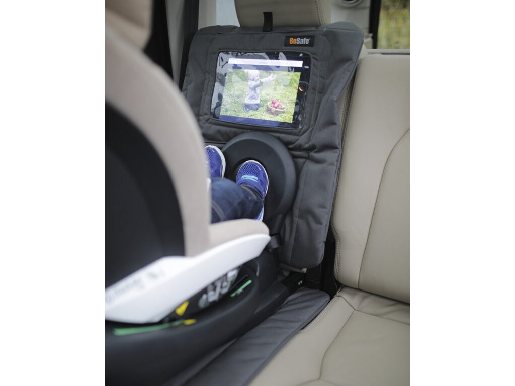 Produkty BeSafe procházejí zlepšujícími inovacemi napříč celým sortimentem. Jsme hrdí na to, že můžeme nabídnout vylepšený ochranný potah sedadla, který disponuje perfektními přizpůsobivými vlastnostmi. Skládá se ze dvou částí a tím je možné ho přichytit jak na zadní sedadlo při uchycení sedačky proti směru jízdy, tak i na zadní stranu předního sedadla při uchycení sedačky po směru jízdy. Ochranný potah je komfortně polstrovaný a vodě odolný, chrání sedačku proti znečištění. Díky průhledu pro tablet zaměstná malého pasažéra i při delších cestách. Veškeré příslušenství BeSafe absolvovalo crash test.