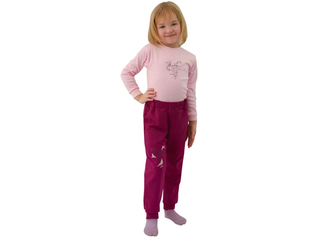 ESITO Dětské tepláky Ptáčci vel. 98 až 116 - fialová / 98