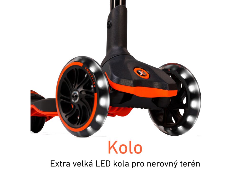extra velká přední LED kola pro hladkou jízdu na nerovném terénu
