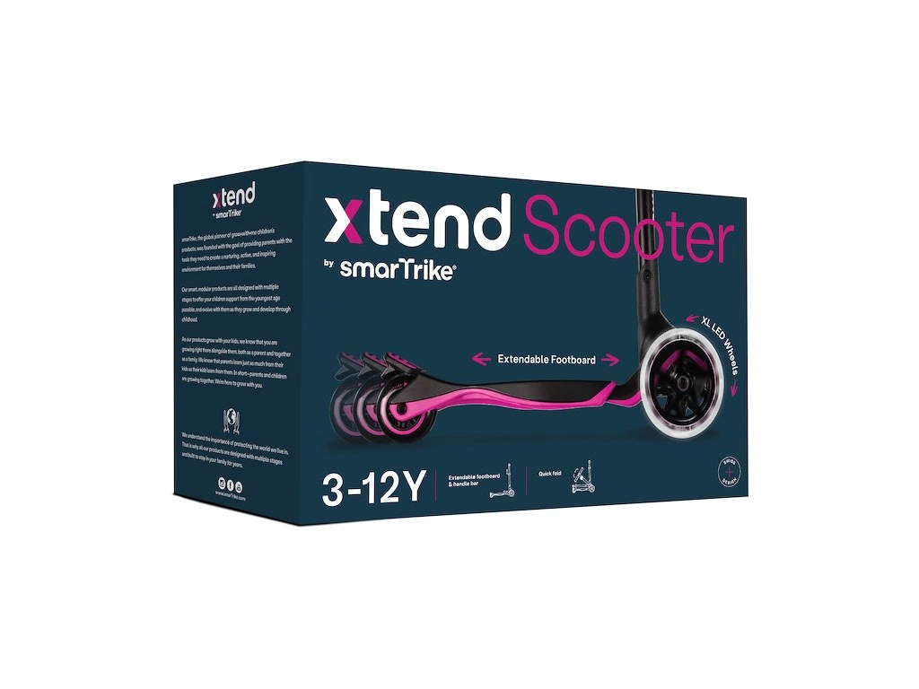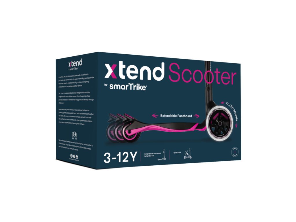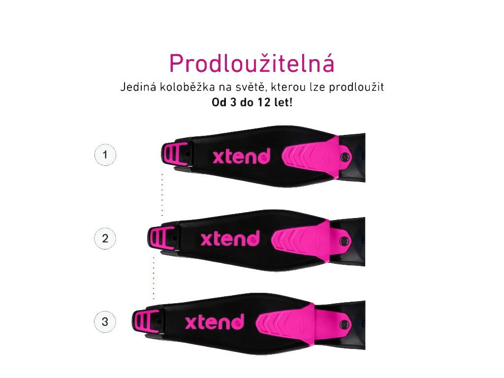 Xtend Scooter byl navržen tak, aby doprovázel svého majitele dětstvím od 3 let až do 12 let. Jedná se o koloběžku s možností prodloužení stupátka a výškového nastavení řídítek. Díky těmto funkcím je možné koloběžku využívat celou řadu let.