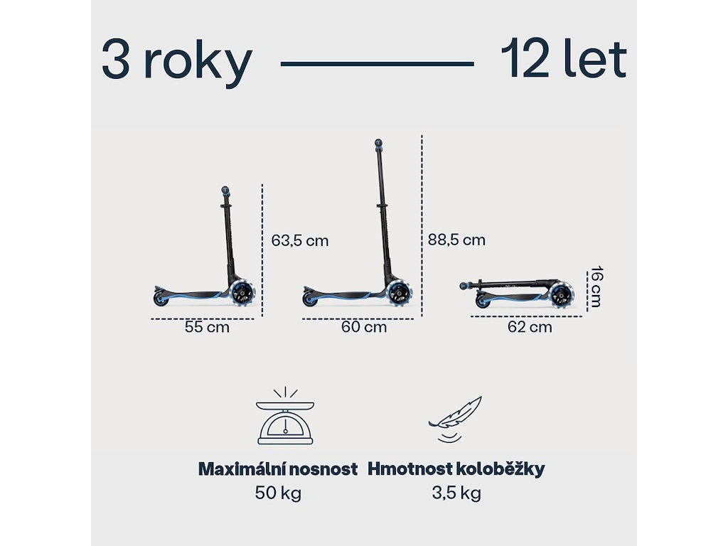 unikátní koloběžka určená dětem od 3 let do 12 let