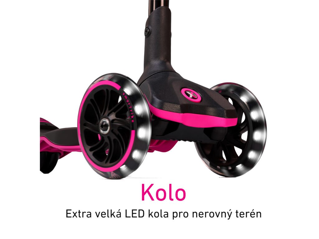 extra velká přední LED kola pro hladkou jízdu na nerovném terénu